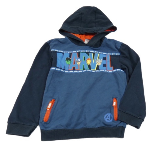 Tmavomodro-modrá mikina so superhrdinami a kapucňou George