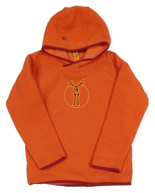 Oranžová fleecová mikina s losom a kapucňou