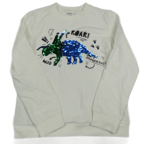 Smotanová mikina s dinosaurem z překlápěcích flitrů Sinsay