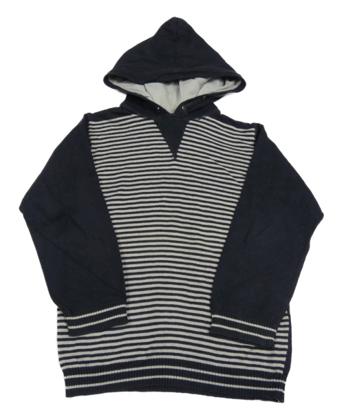 Tmavomodro-béžový pruhovaný sveter s kapucňou