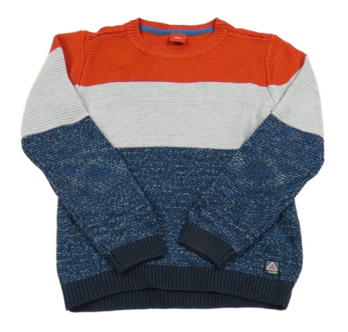 Tmavomodro/modro-svetlošedá -červený melírovaný sveter s nášivkou S. Oliver