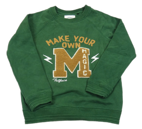 Tmavozelená mikina s písmenky a nápismi a bleskami FAT FACE