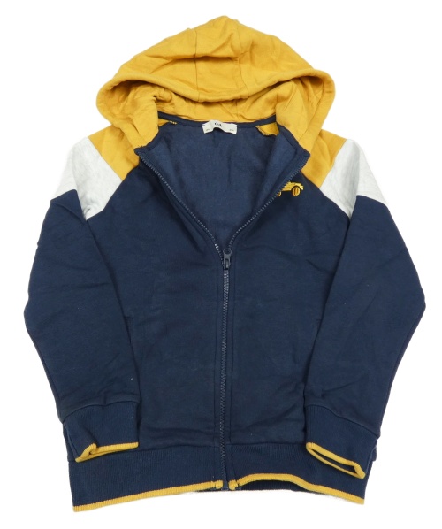 Tmavomodro-okrovo-svetlosivá prepínaci mikina s výšivkou a kapucňou C&A