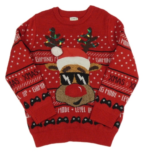 Červený melírovaný vzorovaný sveter so sobom a blikátkem F&F