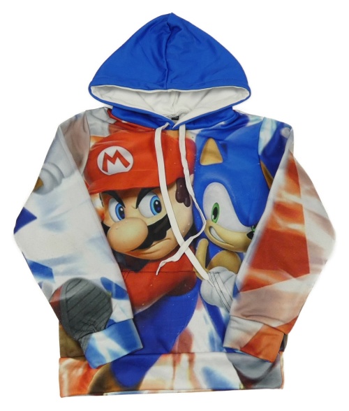 Modro-bielo-červená športová mikina s Mariem a Sonicem a kapucňou