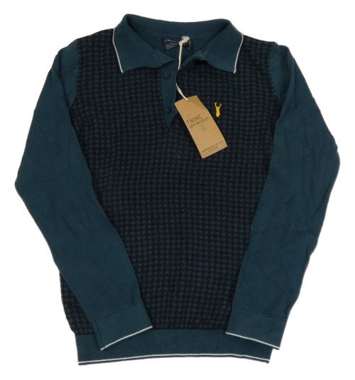 Nové - Tmavozeleno-čierny kockovaný polo sveter s nášivkou Next