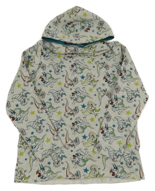 Sivá melírovaná mikina s dinosaurami a kapucňou