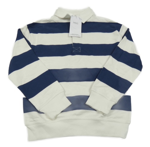 Nové - Tmavomodro-biela pruhovaná mikina s golierikom M&S