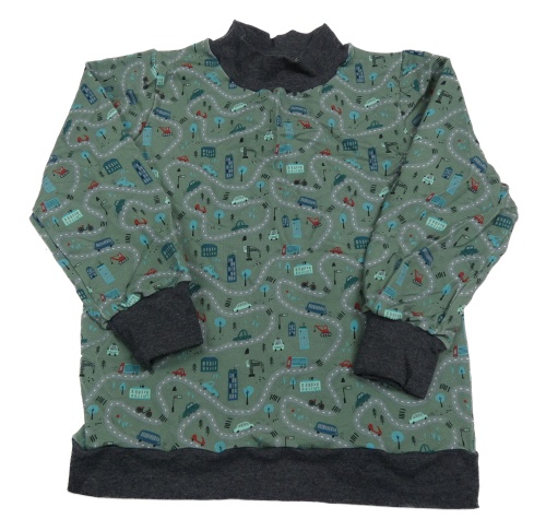 Zelenošedá mikina s autami