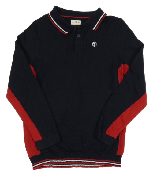 Tmavomodro/vínový sveter s výšivkou a pruhmi a golierikom F&F
