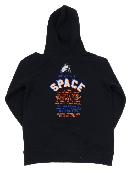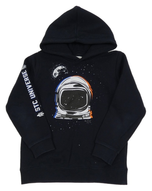 Tmavomodrá tepláková mikina s helmou kosmonauta a nápismi a kapucňou STC