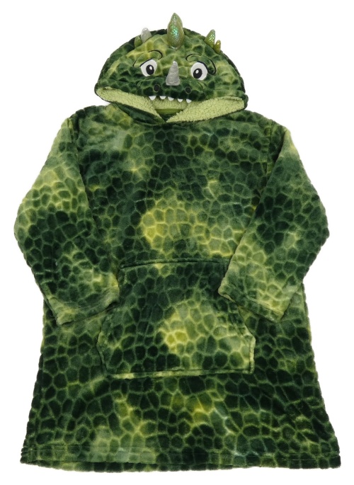 Zelená chlpatá oversize mikina s -kapucí dinosaurus