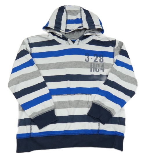 Bielo-sivo-modrá pruhovaná mikina s nčíslem a kapucňou George
