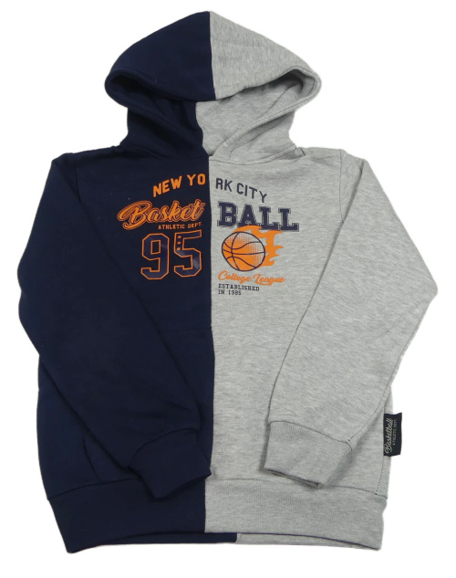 Tmavomodro-sivá mikina s potlačou a kapucňou