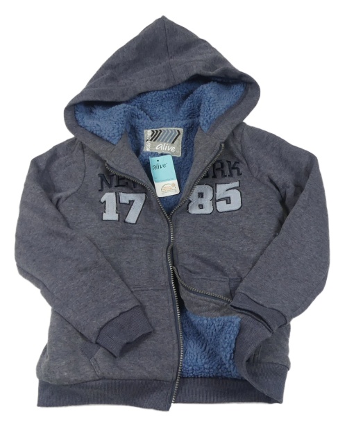 Nová - tmavomodro/šedá melírovaná prepínaci zateplená mikina s číslom a nápisom a kapucňou alive