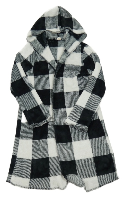Čierno-biely kockovaný chlpatý cardigan s kapucňou Shein