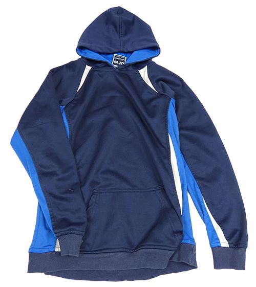 Tmavomodro-modro-biela športová mikina s vreckom a kapucňou
