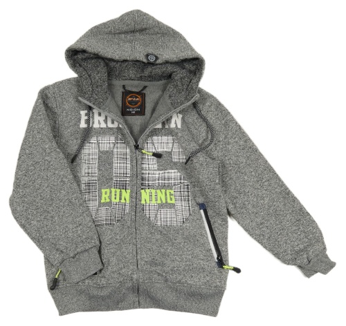 Sivá melírovaná prepínaci mikina s nápisom a kapucňou