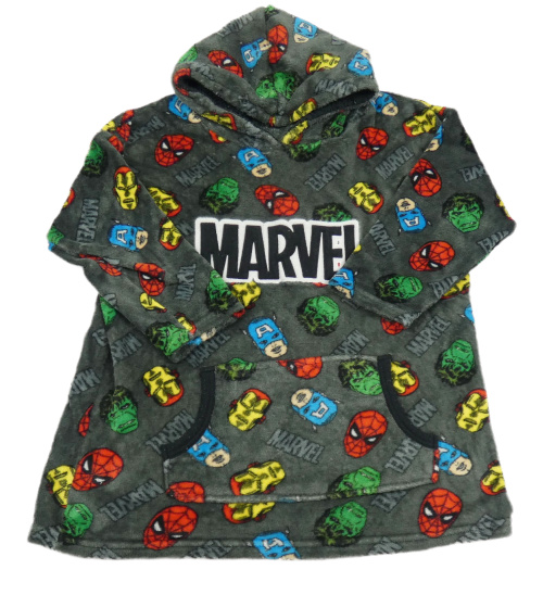 Sivá plyšová oversized domáceá mikina so superhrdinami a kapucňou Marvel