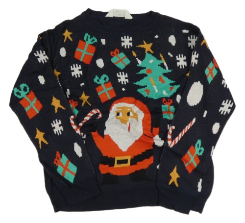 Tmavomodrý sveter so Santou a darčekmi H&M