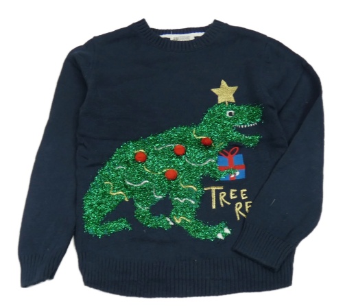 Tmavomodrý sveter s dinosaurom s vánočním motívom H&M