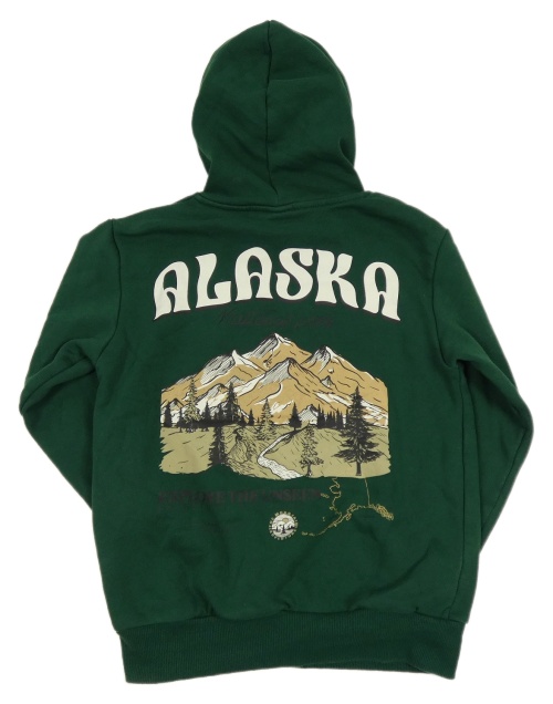 Tmavozelená mikina s nápismi a horami a kapucňou LC Waikiki