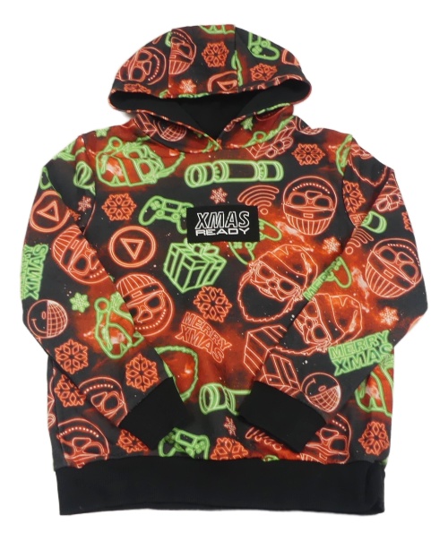 Čierno-červená mikina s vánočním motívom a kapucňou George