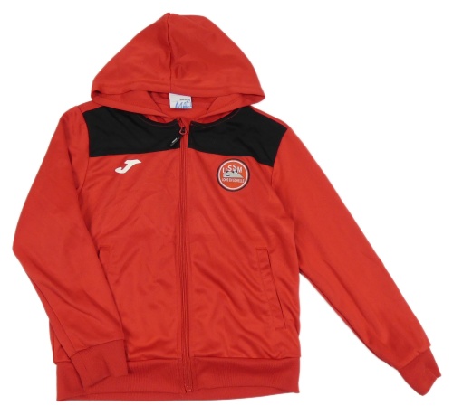Červeno-čierna športová prepínaci mikina s nášivkou a kapucňou JOMA