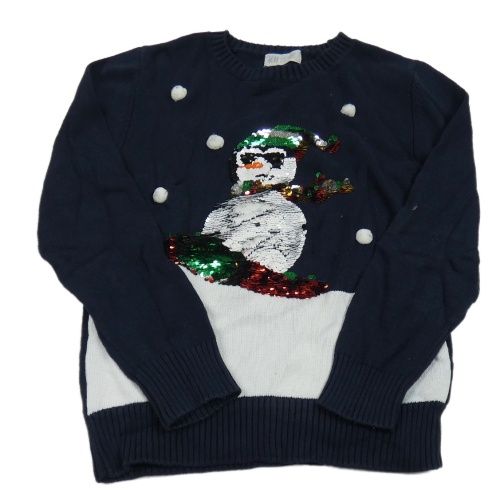 Tmavomodro-biely sveter so sněhulákem s překlápěcími flitre H&M