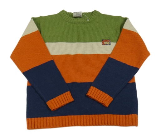 Zeleno-béžovo-oranžovo-tmavomodrý sveter s nášivkou
