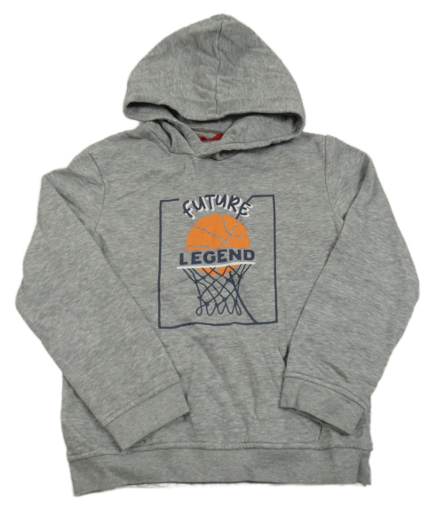 Sivá melírovaná mikina s potlačou a kapucňou
