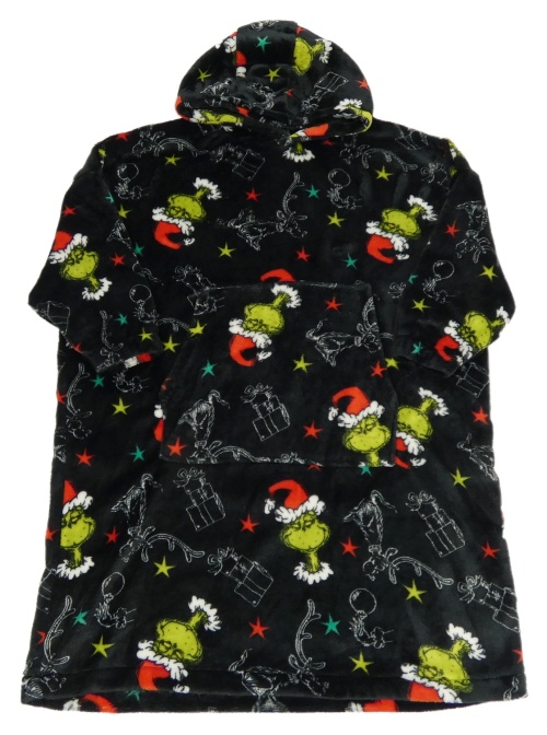 Čierna plyšová oversize mikina s Grinchem a kapucňou