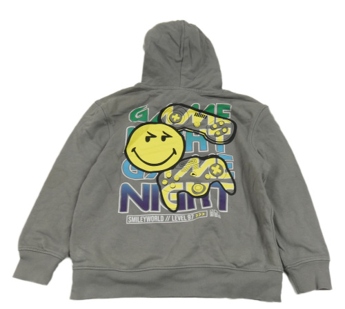 Sivá mikina s ovladačem, smajlíky a kapucňou