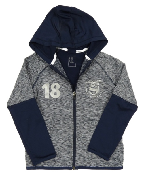 Tmavomodrá melírovaná prepínaci športová funkčná mikina s číslom a kapucňou Artengo