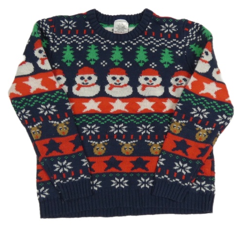 Tmavomodrý pletený sveter so sněhuláčky a stromčekmi a sobmi Lily & Dan