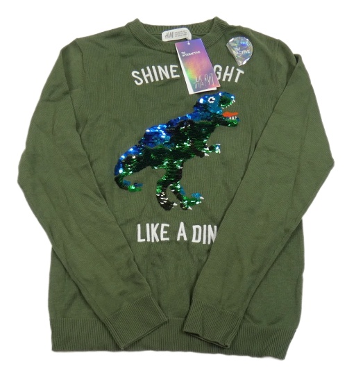 Nové - Khaki sveter s dinosaurem z flitrů H&M