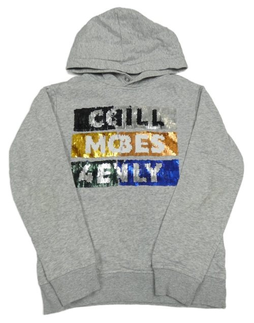 Sivá melírovaná mikina s překlápěcími flitre s nápismi a kapucňou H&M