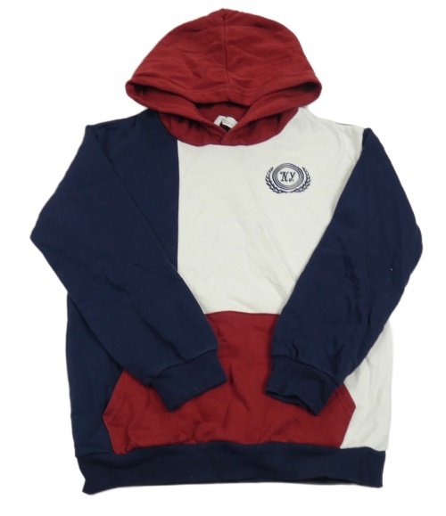 Tmavomodro-červeno-biela mikina s výšivkou a kapucňou H&M