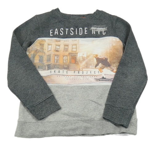 Antracitovo-sivá melírovaná mikina s domem a skateboardistou C&A