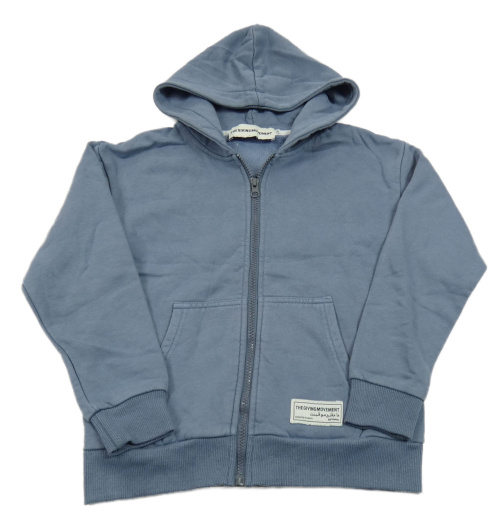 Šedomodrá prepínaci mikina s nápisom a kapucňou