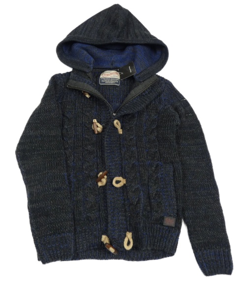 Čierno-modrý melírovaný prepínaci sveter s kapucňou