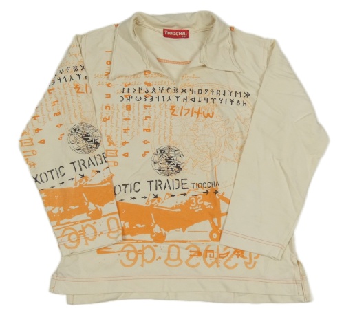 Smetanové mikinotriko s lietadlom a zeměkoulí a golierikom Tioccha