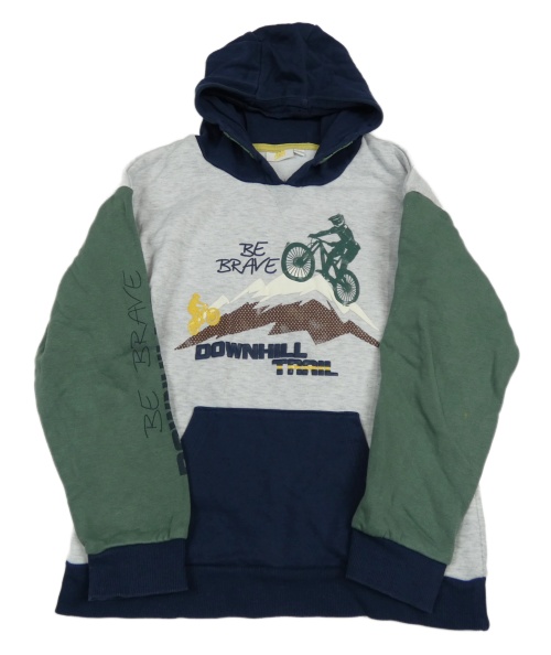 Sivo-kaki-tmavomodrá mikina s horou a kapucňou Kids