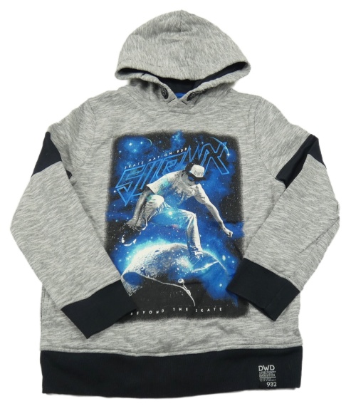 Sivo-čierna melírovaná mikina s potlačou a kapucňou C&A