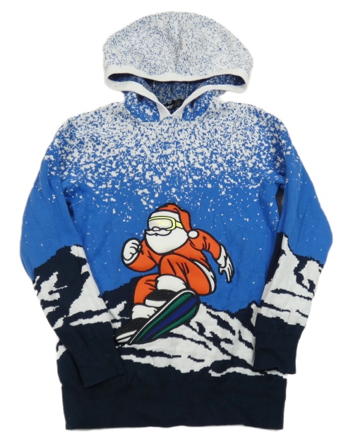 Modro-biely vzorovaný sveter so Santou a kapucňou Next