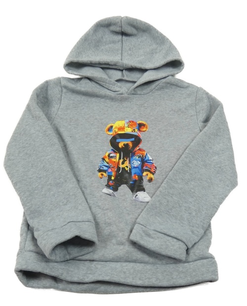 Sivá melírovaná mikina s medvěďom a kapucňou