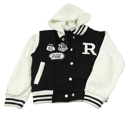 Čierno-biela baseballová mikina s výšivkami a kapucňou
