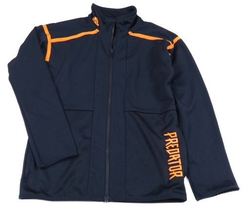 Tmavomodro-neónově oranžová vzorovaná prepínaci športová mikina Adidas