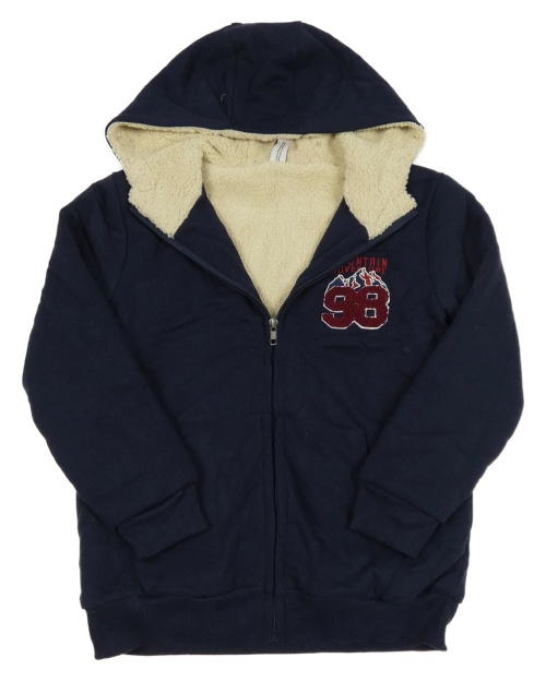 Tmavomodrá zateplená prepínaci mikina s číslom a kapucňou Yigga