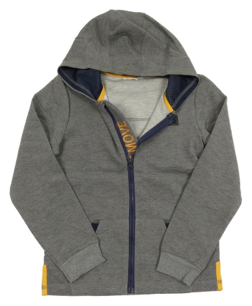 Sivá melírovaná tech fleece prepínaci prepínaci mikina s nášivkou a kapucňou Kids